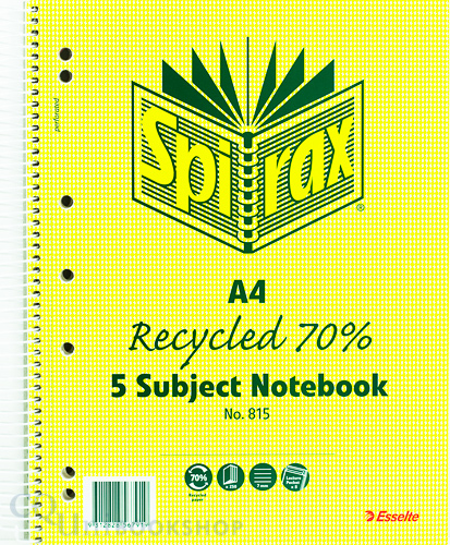 Spirax Recycled 5 Subject Notebook ( A4 - #815 )